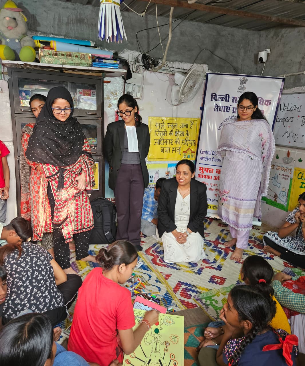 Awareness Session for children on Cyber Bullying, protecting personal information and privacy and how to respond to unsafe situations on 11.11.2025 at Sarai Rohila Railway Station Road Near Nava Hind Secondary Girls School, from 03:00 PM. The awareness session was conducted by Ms. Himanshi Tyagi, Ld. Secretary, DLSA, Central-II alongwith Ms. Jyoti, Ld. LAC, DLSA, Central-II to address and interact with the children to motivate
